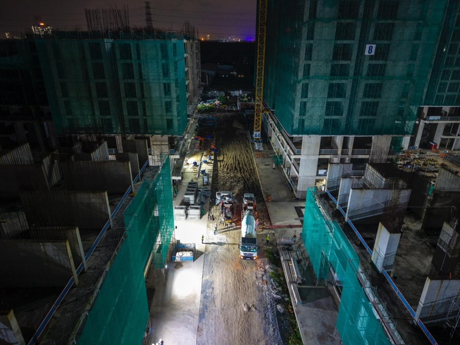 Từ những ngày đầu tháng 7, công trường La Pura ngày đêm sáng đèn, đội ngũ kỹ sư, công nhân, máy móc hoạt động 24/7.