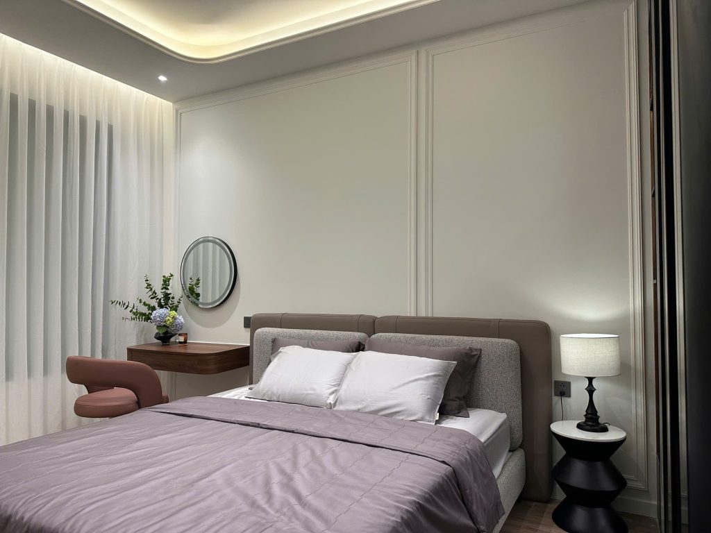 Phòng ngủ chính của căn hộ mẫu 2 phòng ngủ La Pura được nhiều khách hàng yêu thích